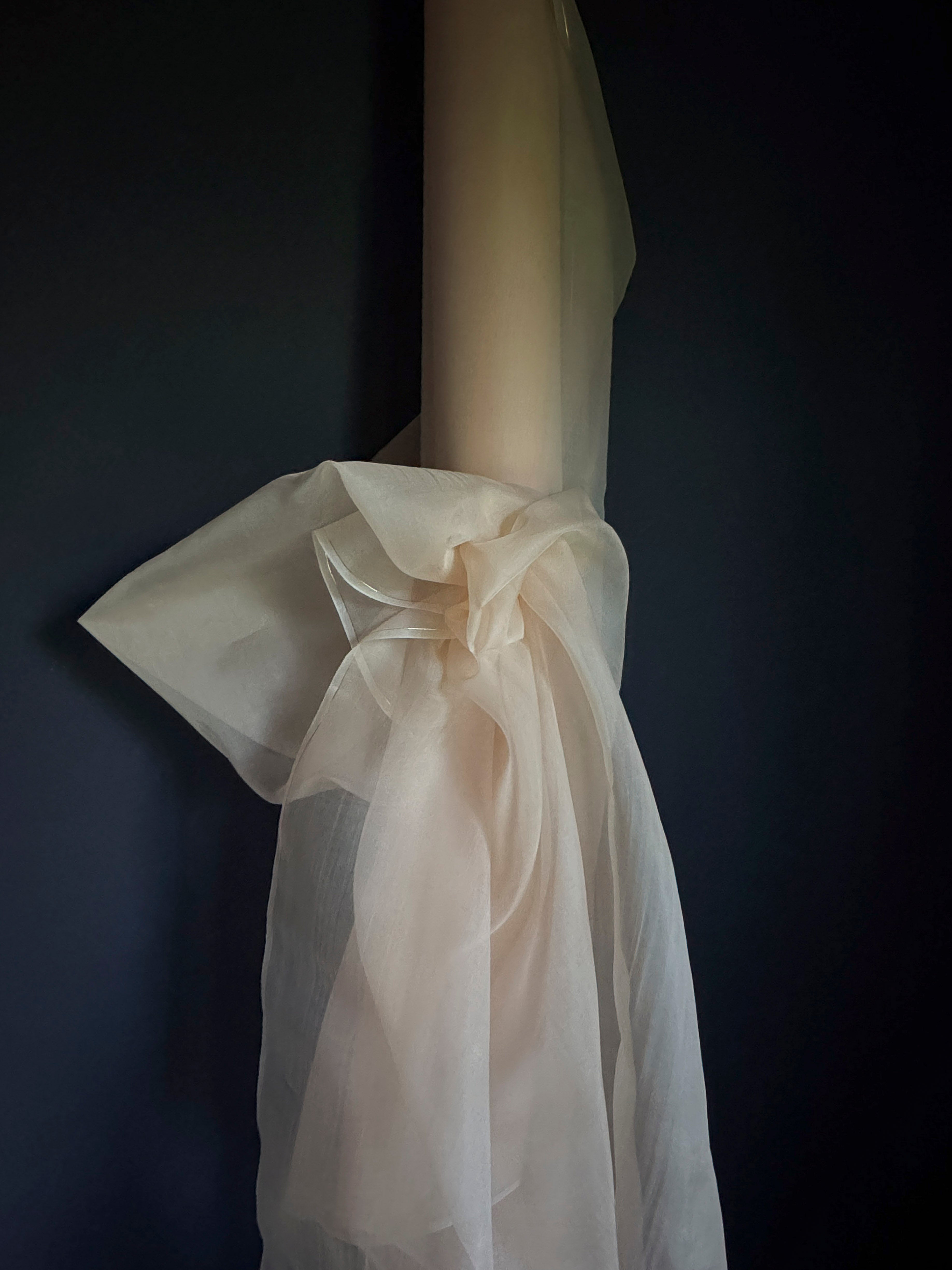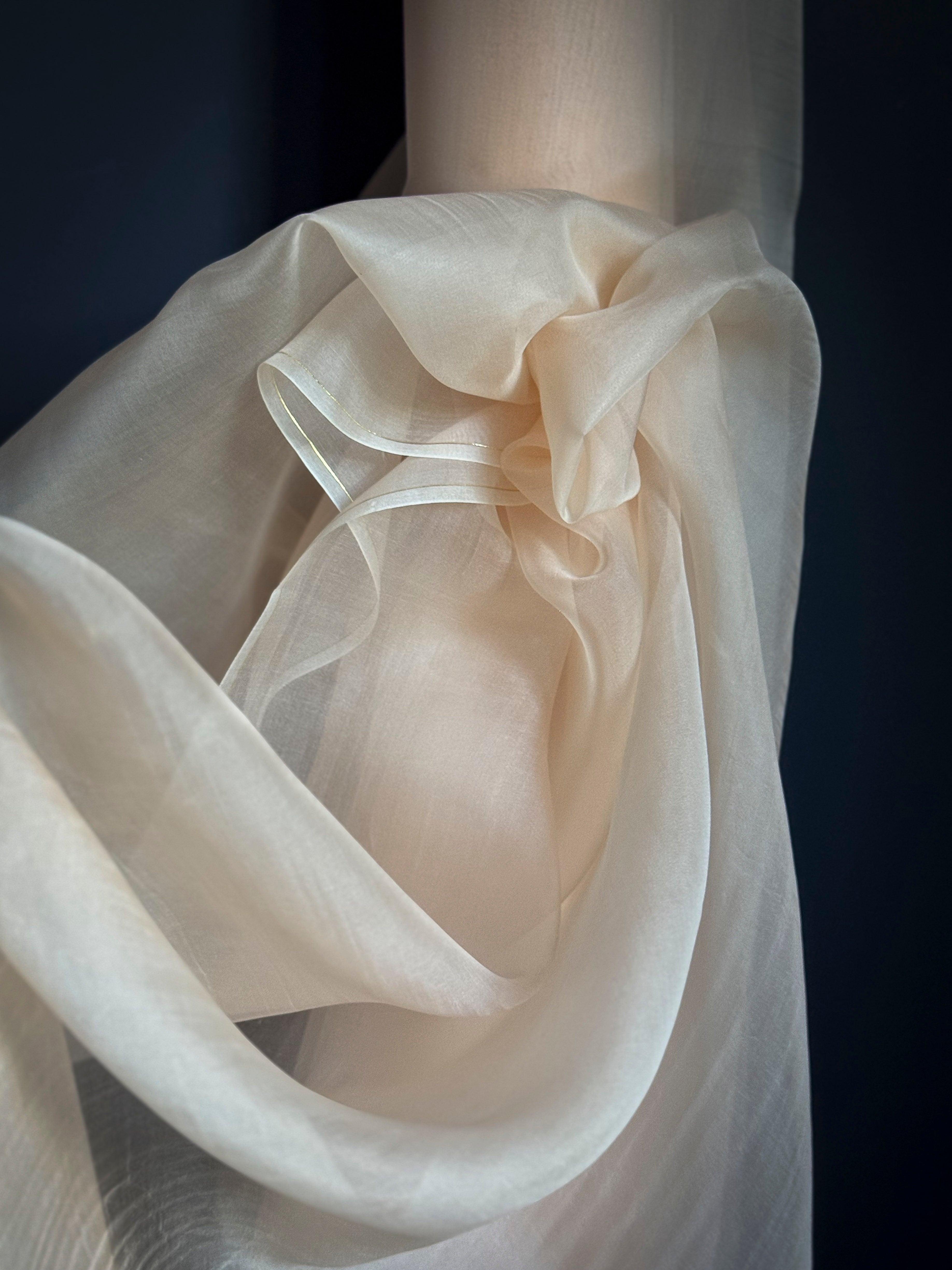 Hand-loomed from 100% organic silk, this exclusive medium-weight organza fabric has a distinctive body and texture. Its airy, translucent quality forms a delicate veil of color, perfect for table overlays, decorative accents, and vignette styling. Elevate your designs with its sculptural versatility—tuck and pin to craft dynamic shapes, or let it shine as a show-stopping centerpiece in your tablescape or creative projects.
