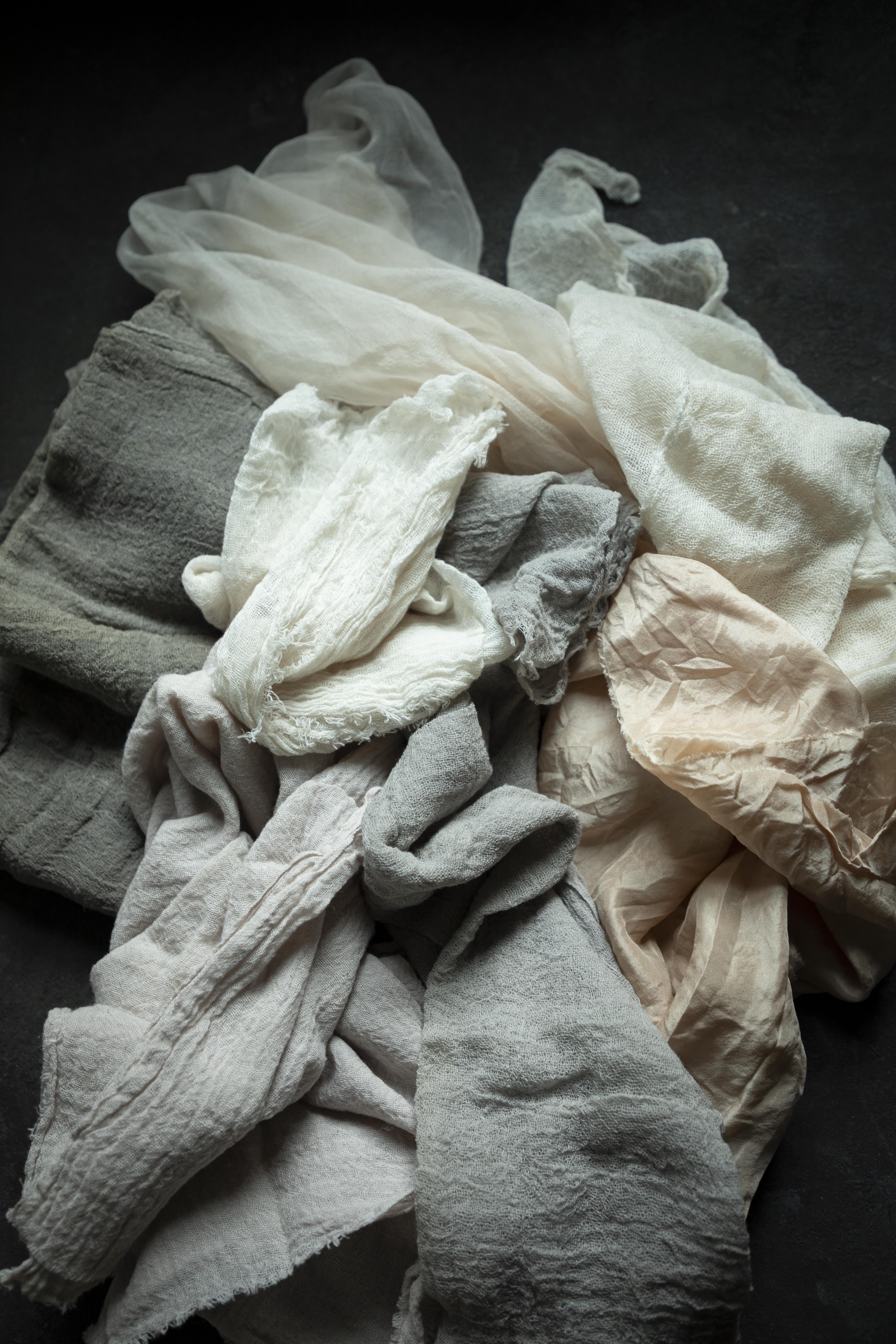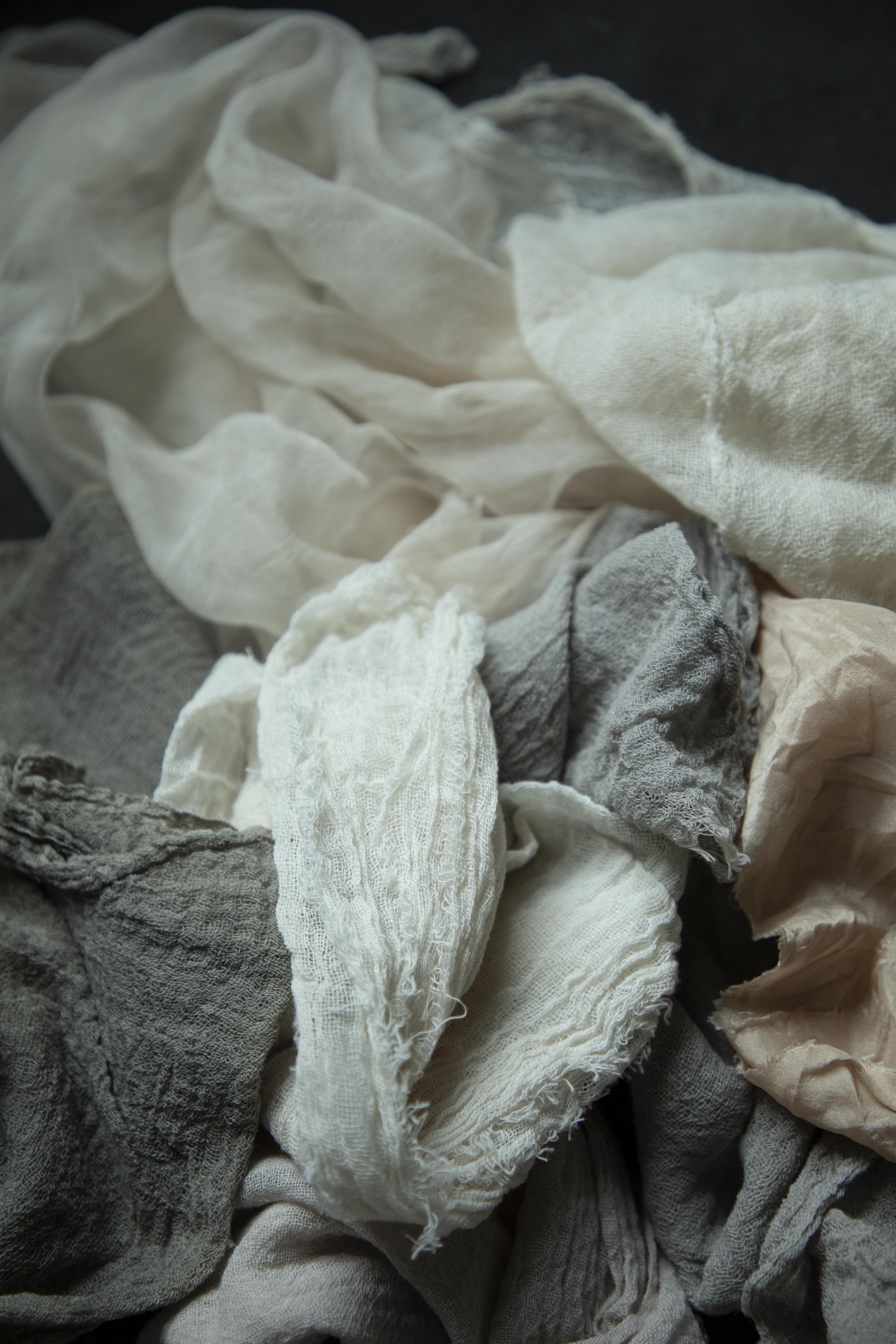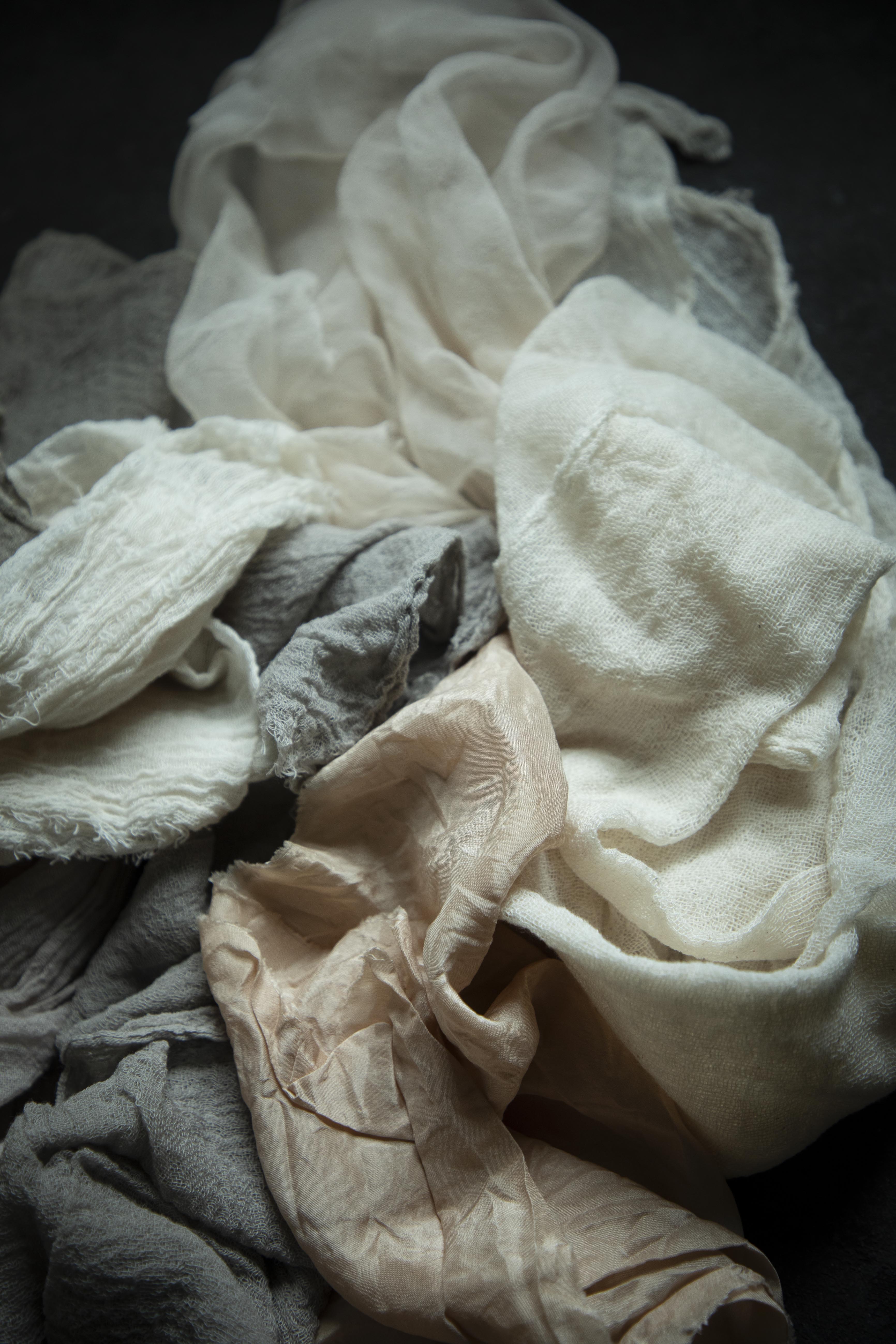 TEXTILES: Medium and tight weave cotton, Silk habutai, Sheer Silk.