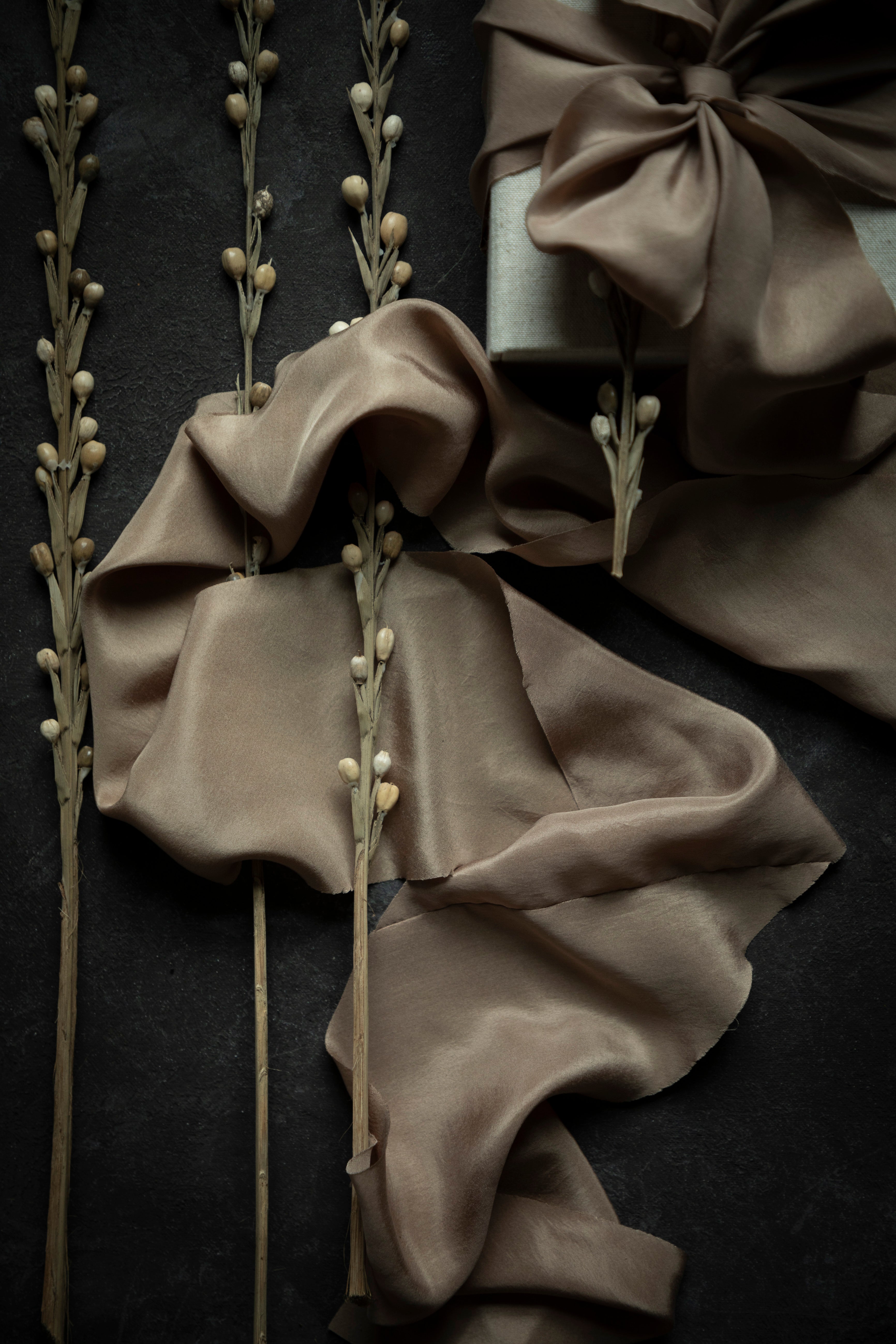 Soft, flowing, and impossibly luxurious, these silk bias ribbons are more than adornments—they are heirlooms, designed to be cherished for generations. Whether gracing a wedding bouquet, elevating a gift, or adding a meaningful touch to your next creation, they carry the essence of sustainability and timeless beauty. Rooted in natural materials and crafted with reverence for the earth, these ribbons are a testament to the harmony between understated luxury and organic authenticity.