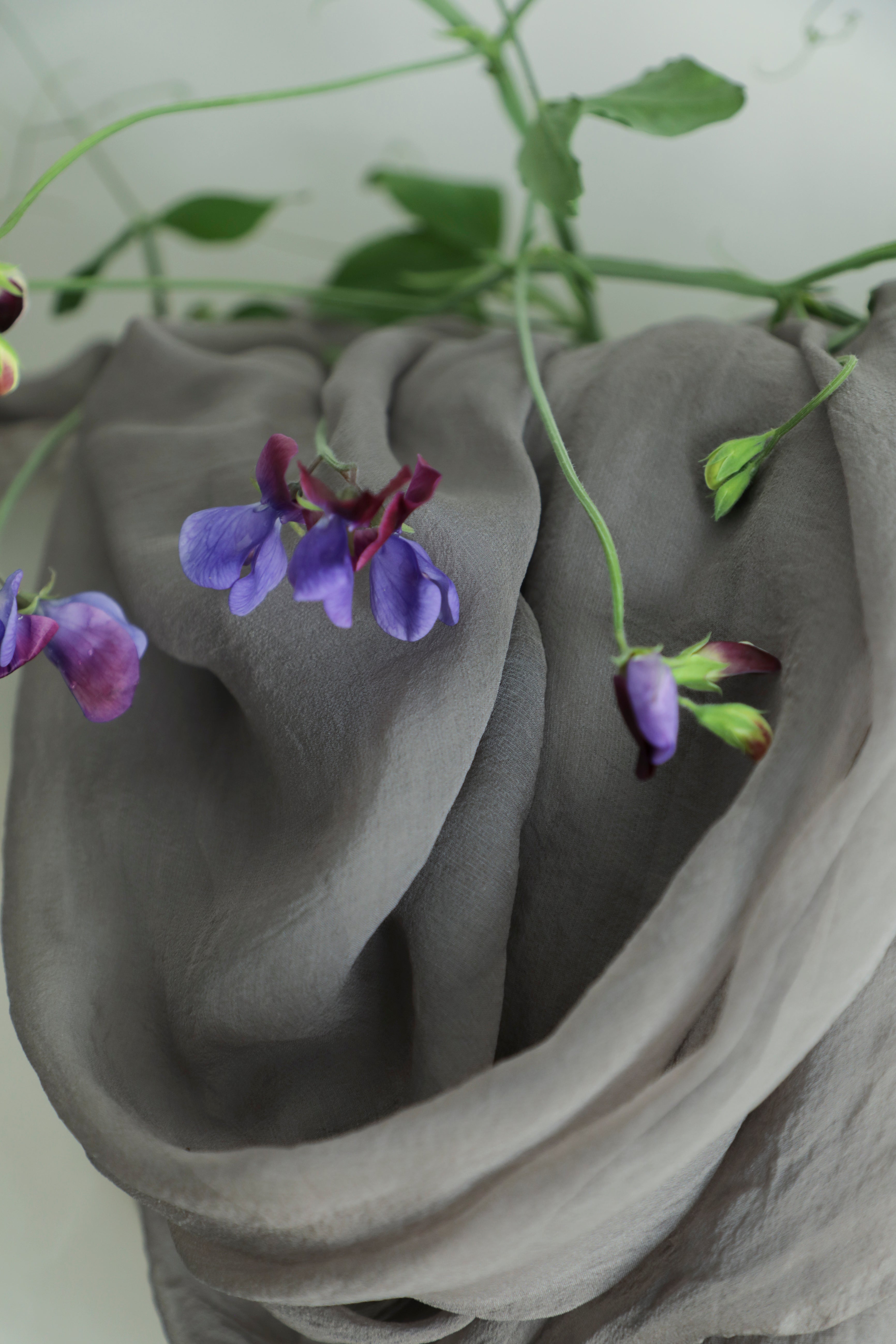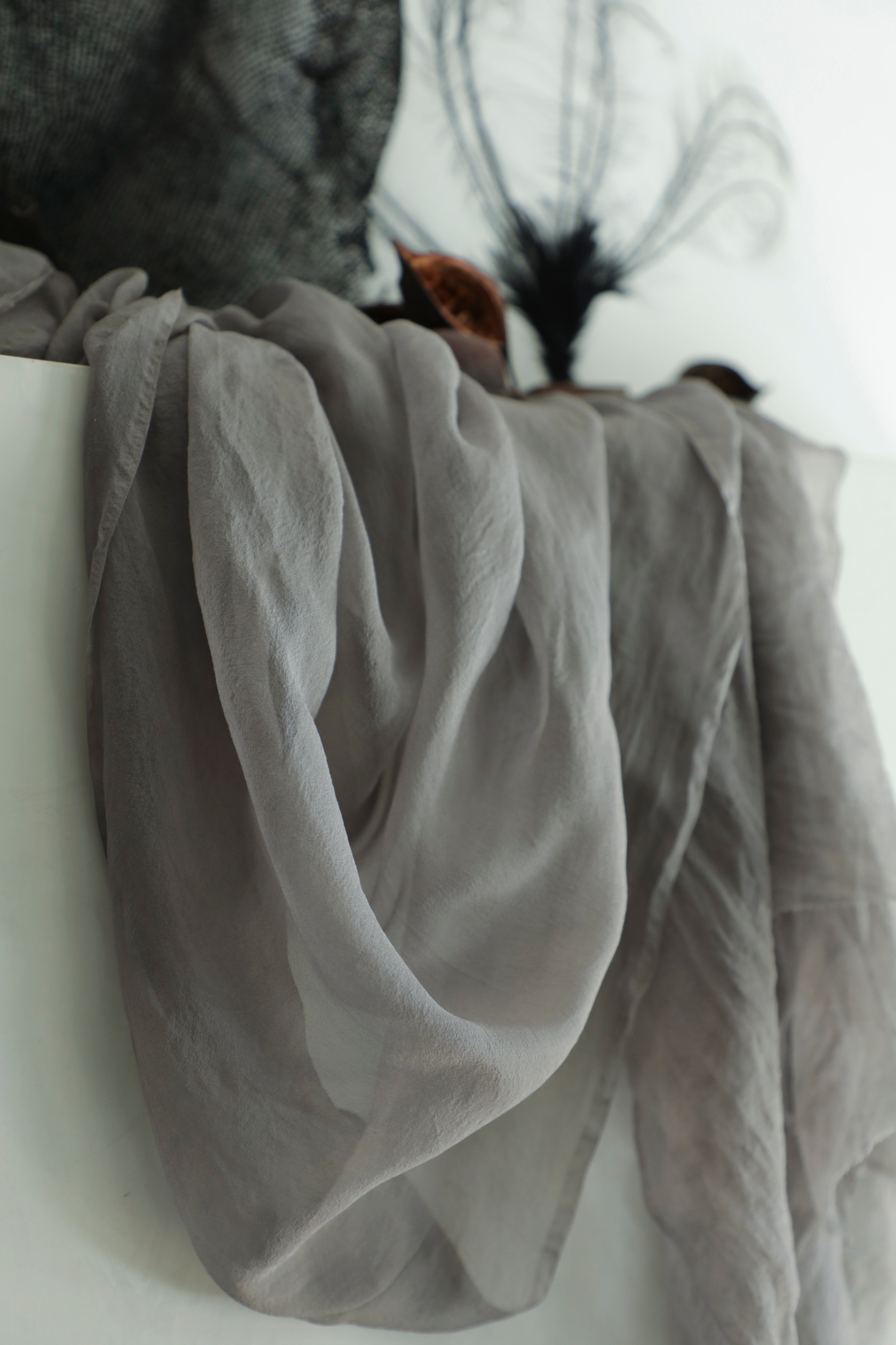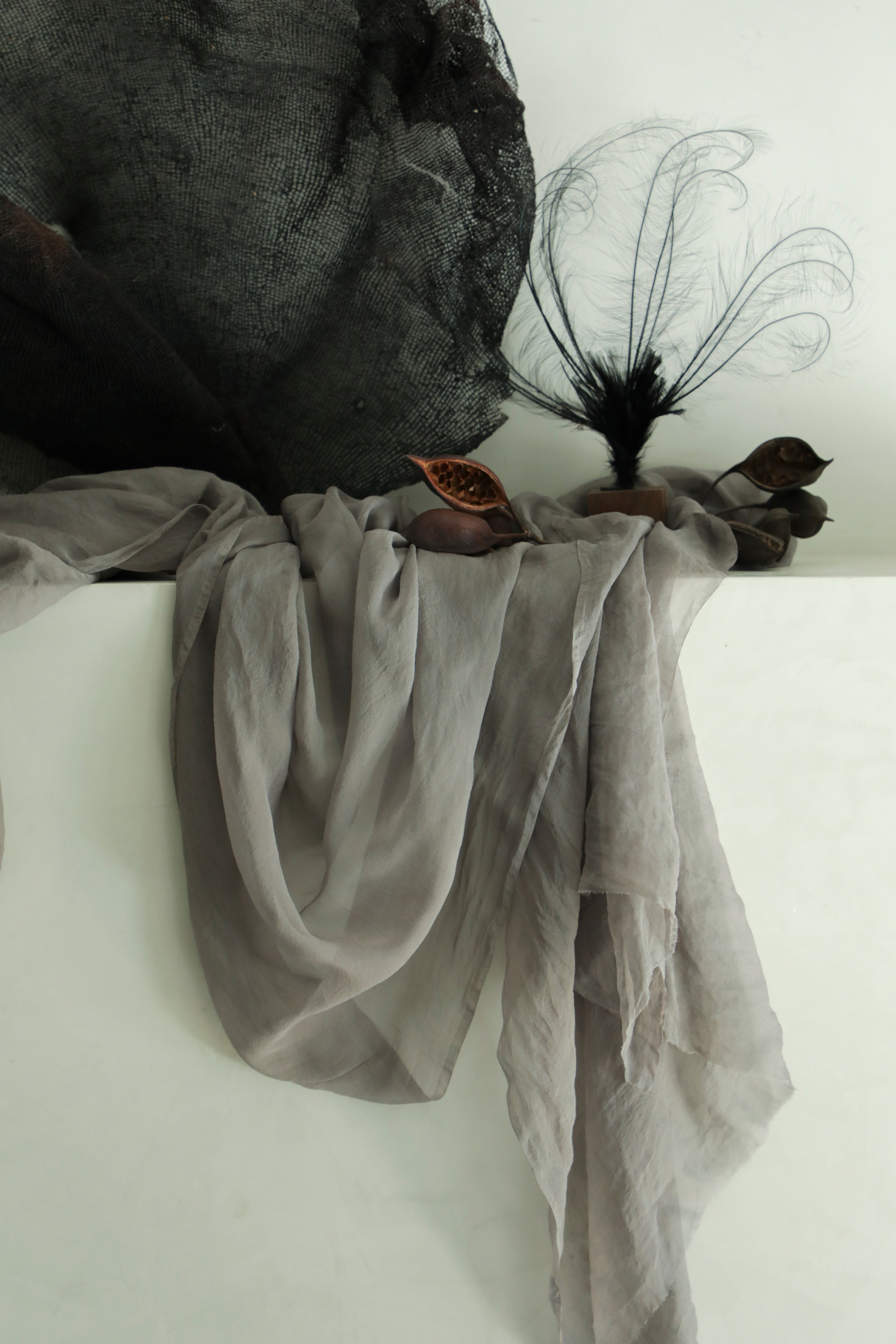 Each sheer silk textile begins with premium, Oeko-Tex certified, chemical-free silk, ensuring a foundation of pure, conscious luxury. We then hand-dye the fabric using pigments drawn from the earth—plants, flowers, nuts, and bark—to create hues that whisper stories of their botanical origins. The subtle variations in tone, born from the alchemy of the hand-dyeing process, make every textile a unique piece of art.