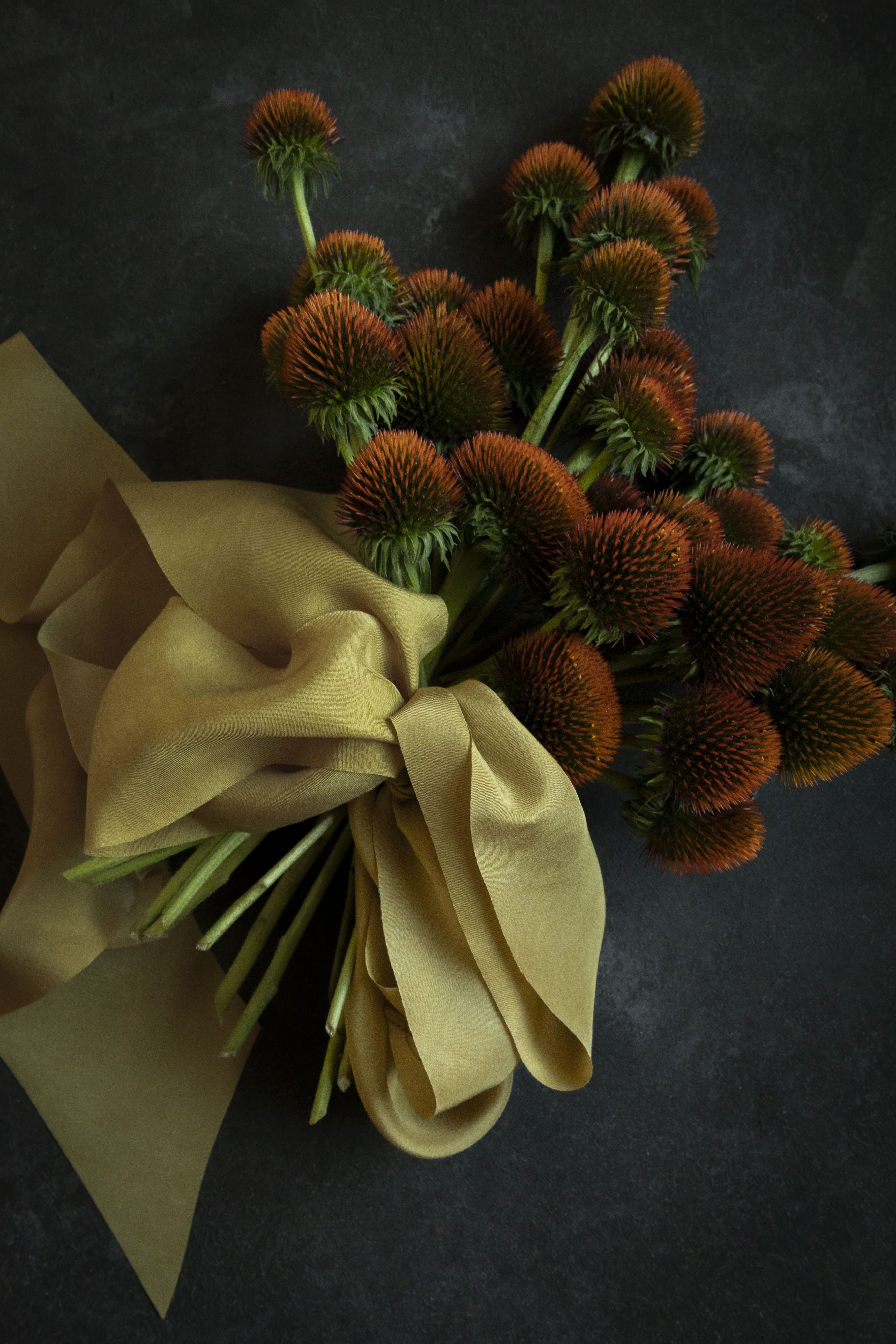 Naturally dyed with Kamala, a powdery substance obtained from the fruit of the Mallotus philippinensis tree. This method allows the color's inherent richness and complexity to emerge, resulting in a depth and variation that celebrates its organic origins.