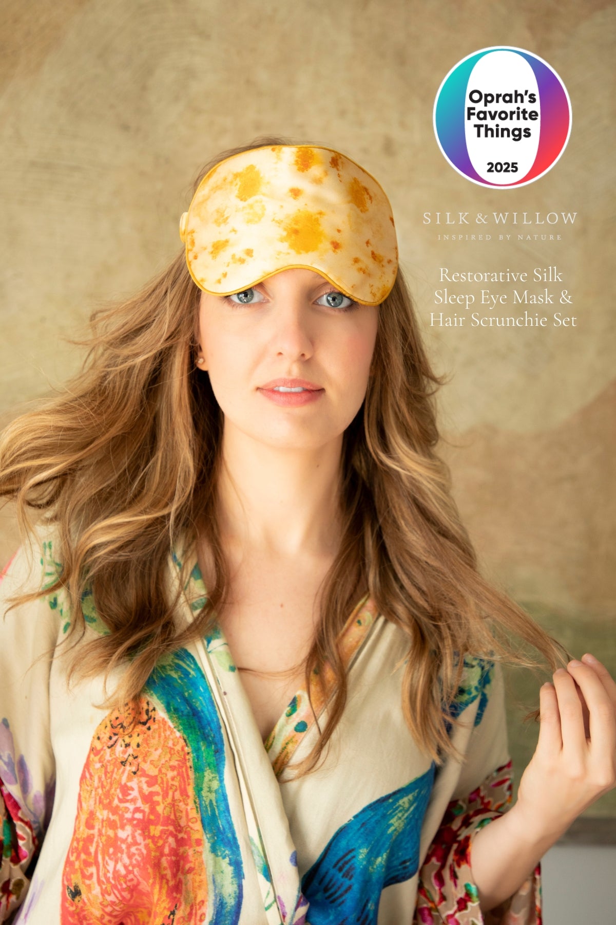 Silk & Willow 100% Pure Mulberry Silk Sleep Eye Mask & Hair Scrunchie Gift Set (Marigold Yellow)